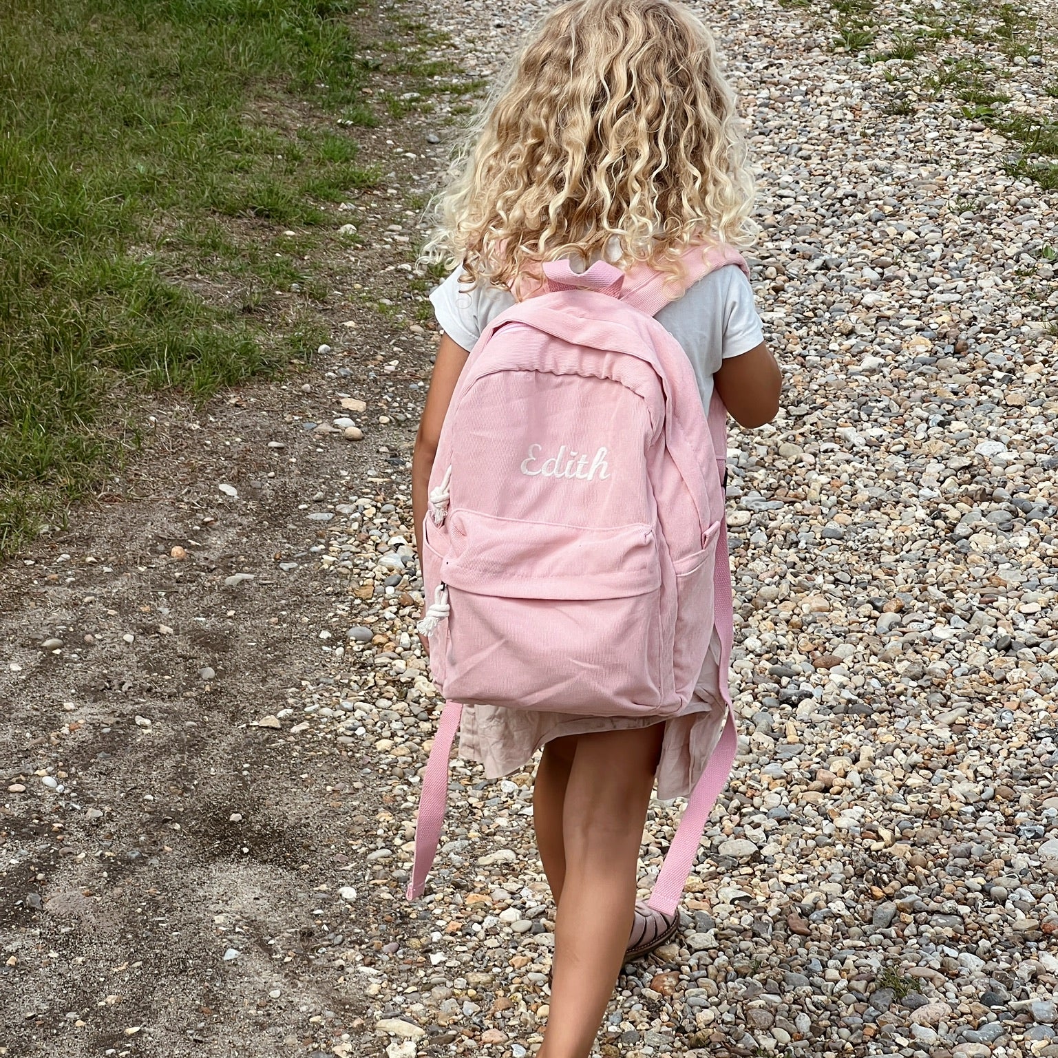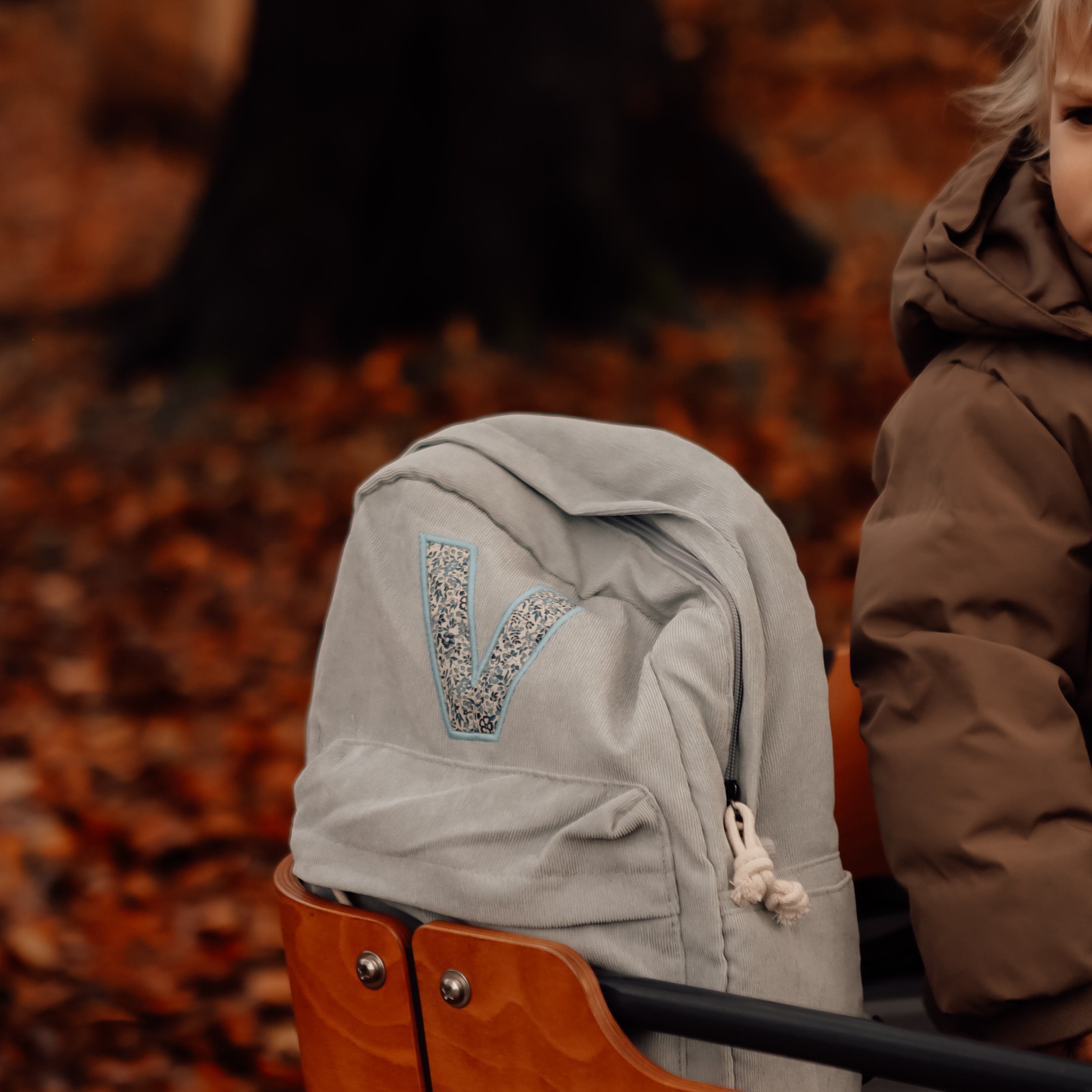 e, taske med navn, børnegave, gave med navn, rygsæk skolestart