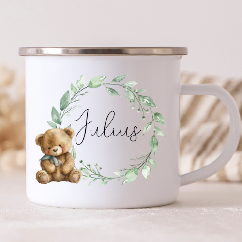 Snygg och personlig barnkopp med en söt illustration med en nallebjörn.