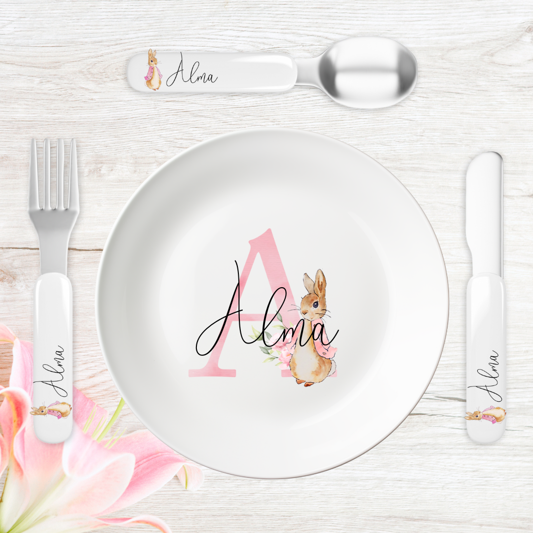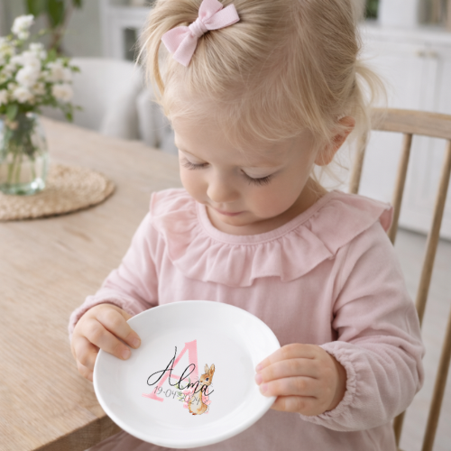 Söt och personlig Pelle Kanin -mugg med ditt eget namn.