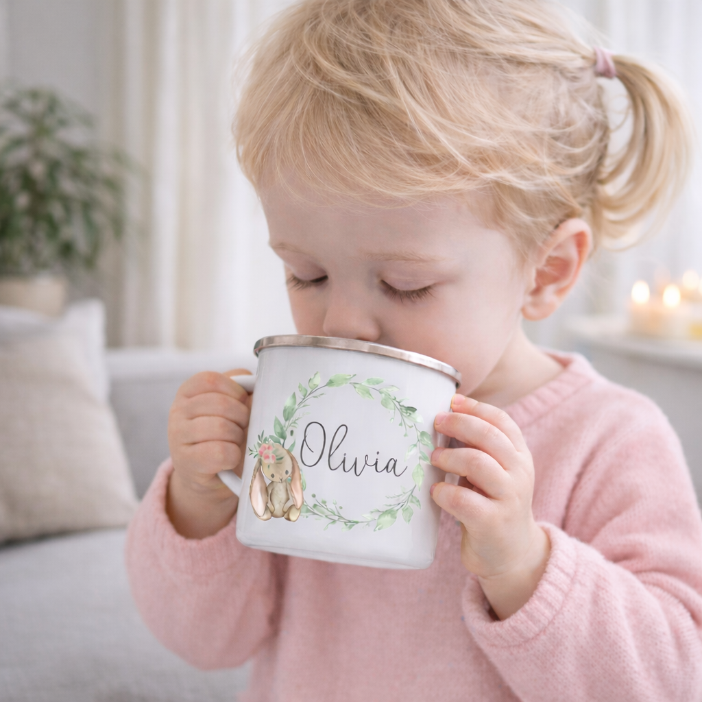 Kopp med bokstav / Bägare med initial - Pelle Kanin (grön bokstav)