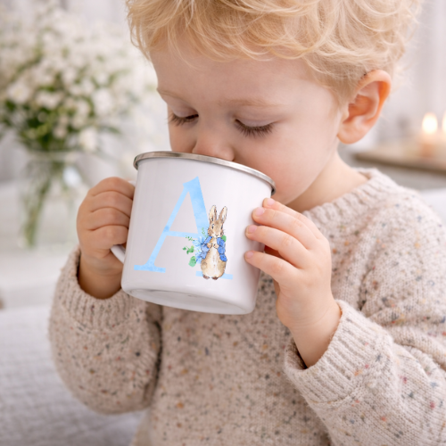 Kopp med bokstav / Bägare med initial - Pelle Kanin (grön bokstav)
