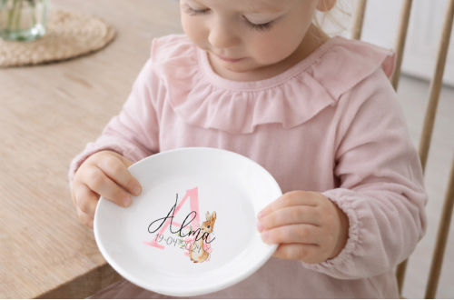 Söt och personlig Pelle Kanin -mugg med ditt eget namn.