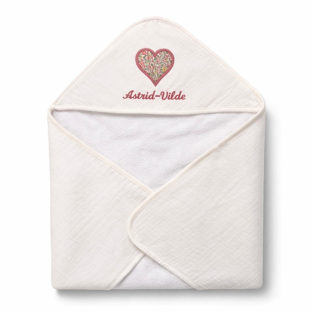 Babyhandduk med huva (Liberty tyg hjärta - Rosa)