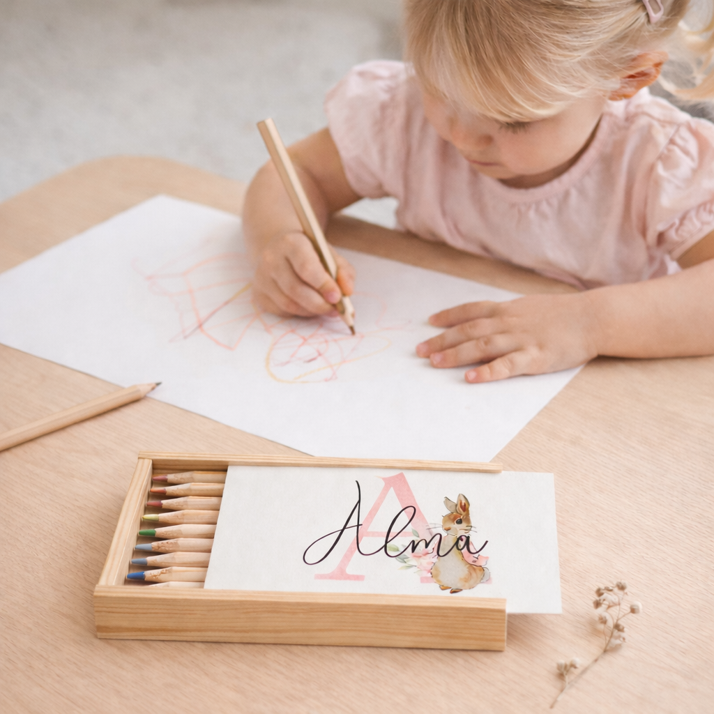 Kommer snart. Personlig blyant trææske (Lyserød)
