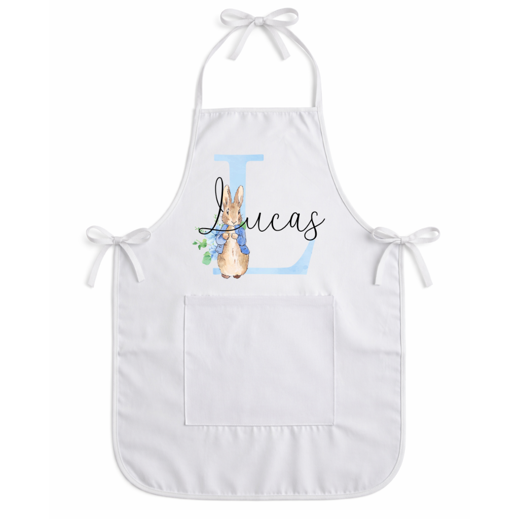 Kommer snart. Personligt børneforklæde (Blå)
