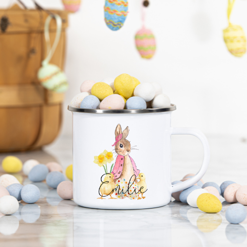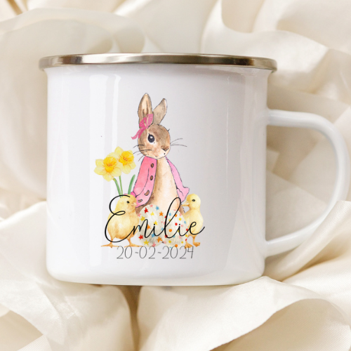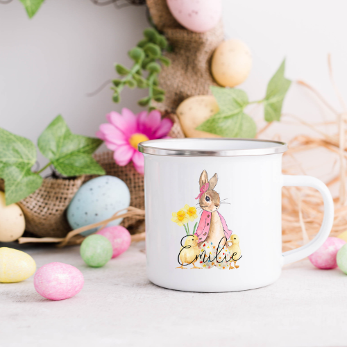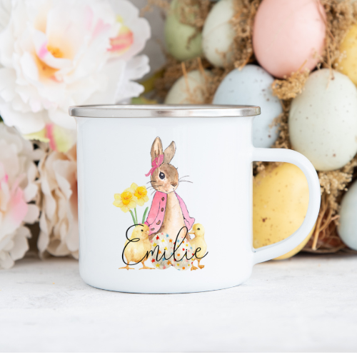 Söt och personlig påsk Pelle Kanin kopp med ditt eget namn.