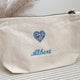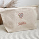 Söt och praktisk necessär med broderat Liberty-tyghjärta och broderat namn.