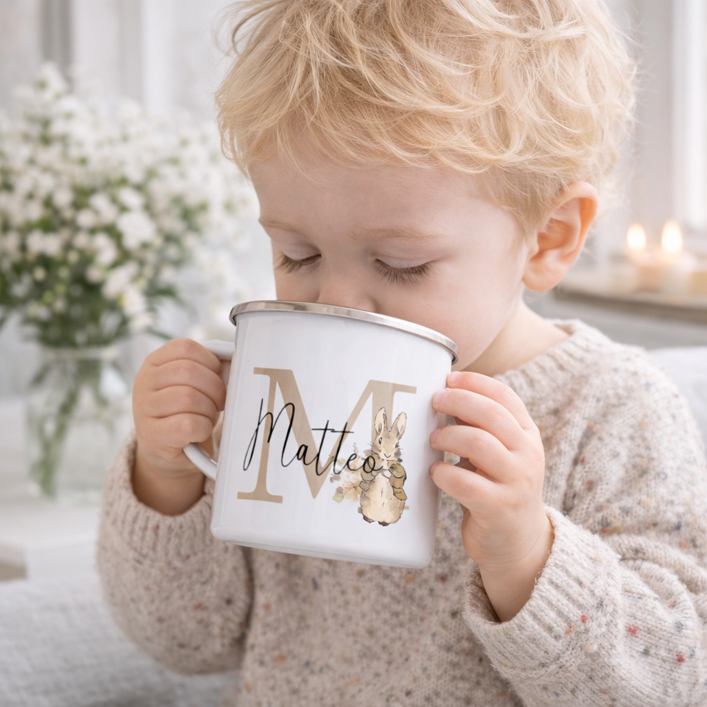 Kopp med namn - Pelle Kanin (beige / brun bokstav)